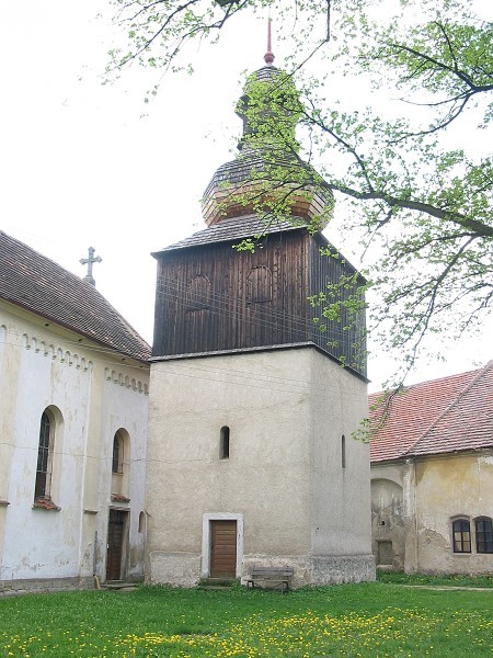 Starobylá zděná zvonice s dřevěným patrem u kostela, obnovená v roce 1789. Zvon přelitý r. 1865 Karlem Vilémem Paulusem v Hradci Králové nesl nápis: LETA 1536 GA ZWON ZWIESTUGI WOGNU WAM, OD MISTRA JAKUBA PTACZKA. Druhý zvon odlil v r. 1767 Johann Georg Kühner v Praze. |
