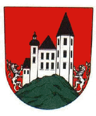 Na červeném štítě stojí na kopci zelené barvy stříbrný hrad s černými střechami. Sestává ze střední budovy se třemi okny v obou podlažích a se stanovou střechou, po levé straně budovy stojí mohutná šestihranná věž se stanovou střechou a třikrát třemi okny nad sebou, po pravé straně je užší a nižší věž se dvěma okny nad sebou a helmicí s lucernou se zlatým křížem. Za věží stojí po pravé straně ještě malé přízemní stavení se dvěma okny. Po obou stranách kopce, na němž stojí hrad, jsou stříbrní dvouocasí lvi bez koruny, vztyčení ke skoku a obrácení ke středu štítu, předními tlapami jako by podpírali hrad.